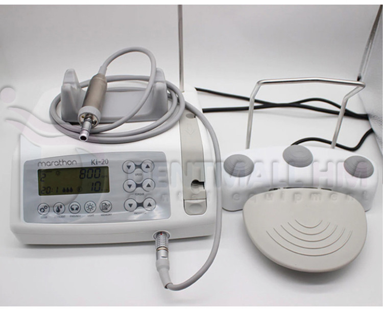 - میکروموتور این دستگاه قابلیت اتصال به کلیه آنگل های استاندارد را داراست، این میکروموتور 265 گرم وزن دارد و از نوع میکروموتور بدون ذغال است که فایبراپتیک بوده و با حداکثر سرعت 40.000 دور در دقیقه کار می کند.